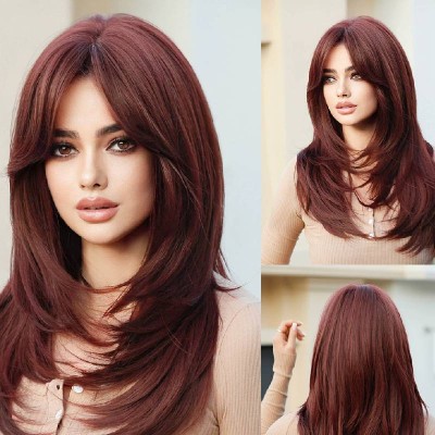 Fashionable layered super long straight hair with a black blunt bangs synthetic wig